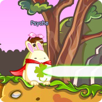 Monte sur les épaules de l'incroyable Super Lapinou Trèfle !! Ultra mignon, ultra craquant... et ultra puissant !! Il possède la force des Trèfles et peut générer un énorme laser qui transformera tous les Blablas dans son rayon en "Mini-Super-Lapinoux-Trèfles" tous choupis et tous adorables !!